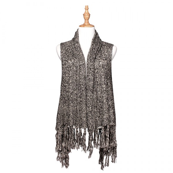 Condition: NewCardigans & Vests - Knitted Cardigan with Tassels VT-AO624BK - Complete your look with a cozy-chic vibe in this sweater vest with a swingy fringe and comfortable chic style for a sophisticated cool-weather look. - 100% Acrylic - Size: 85 x 135 cm - Imported