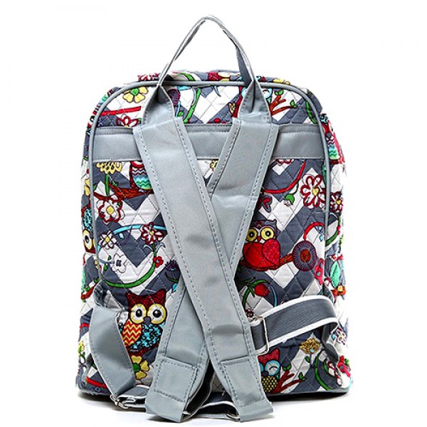$19.99 Quilted Cotton Backpack - Owl & Chevron Printed - Grey